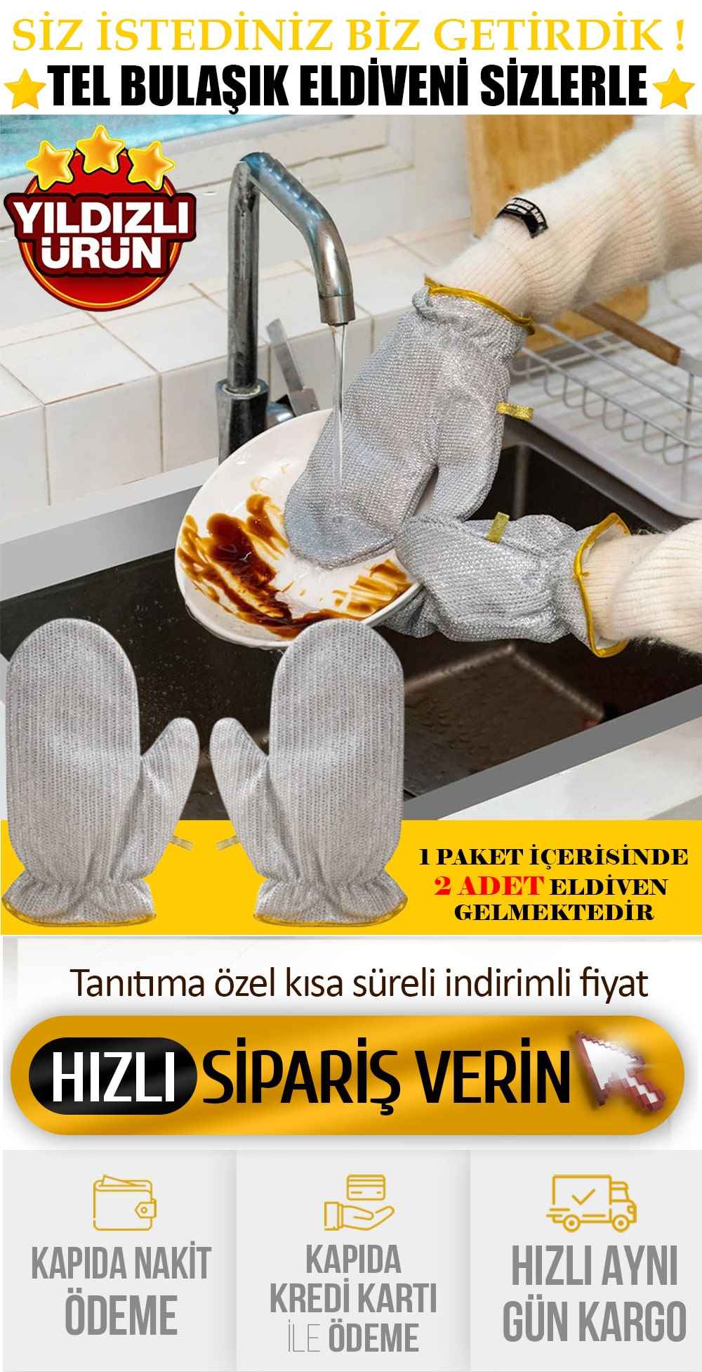 2 Adet TEL BULAŞIK ELDİVENİ -